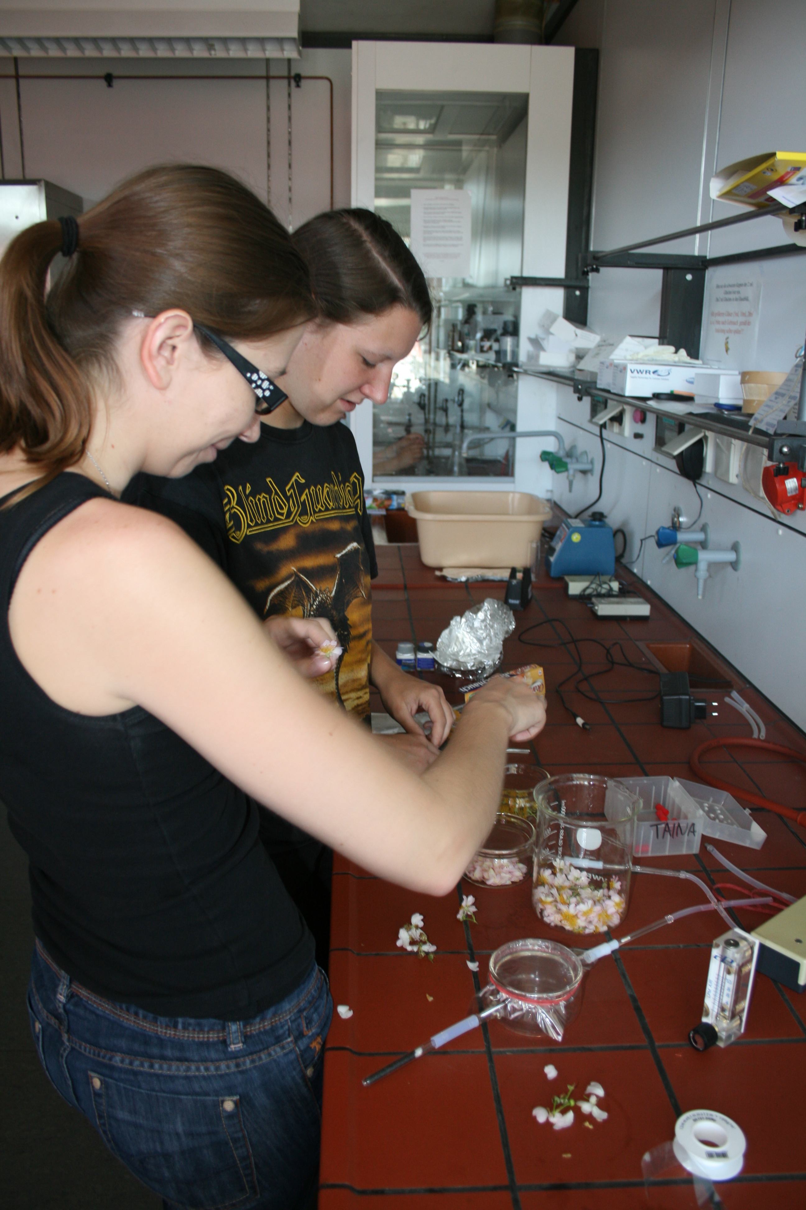 Bei der Betreuung diverser Praktika im Masterstudiengang (mehr dazu unter Lehre) habe ich mich zusammen mit den Studenten in jeweils 3-wöchigen Blöcken schon mehrfach mit verschiedenen anderen Themen wie "Buzz pollination" durch Hummeln und chemische Kommunikation beim Menschen beschäftigt. Auch diese "Seitenprojekte" haben mich immer wieder fasziniert, auch wenn in diesen kurzen Zeiten häufig keine signifikanten Ergebnisse erzielt werden können. Dennoch versuche ich langfristig, die Ergebnisse zu sammeln um so vielleicht doch tiefere Einblicke in einige Fragestellungen zu bekommen.